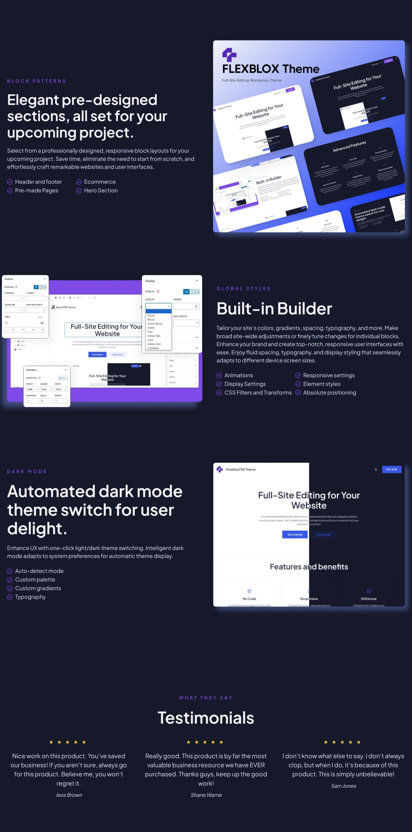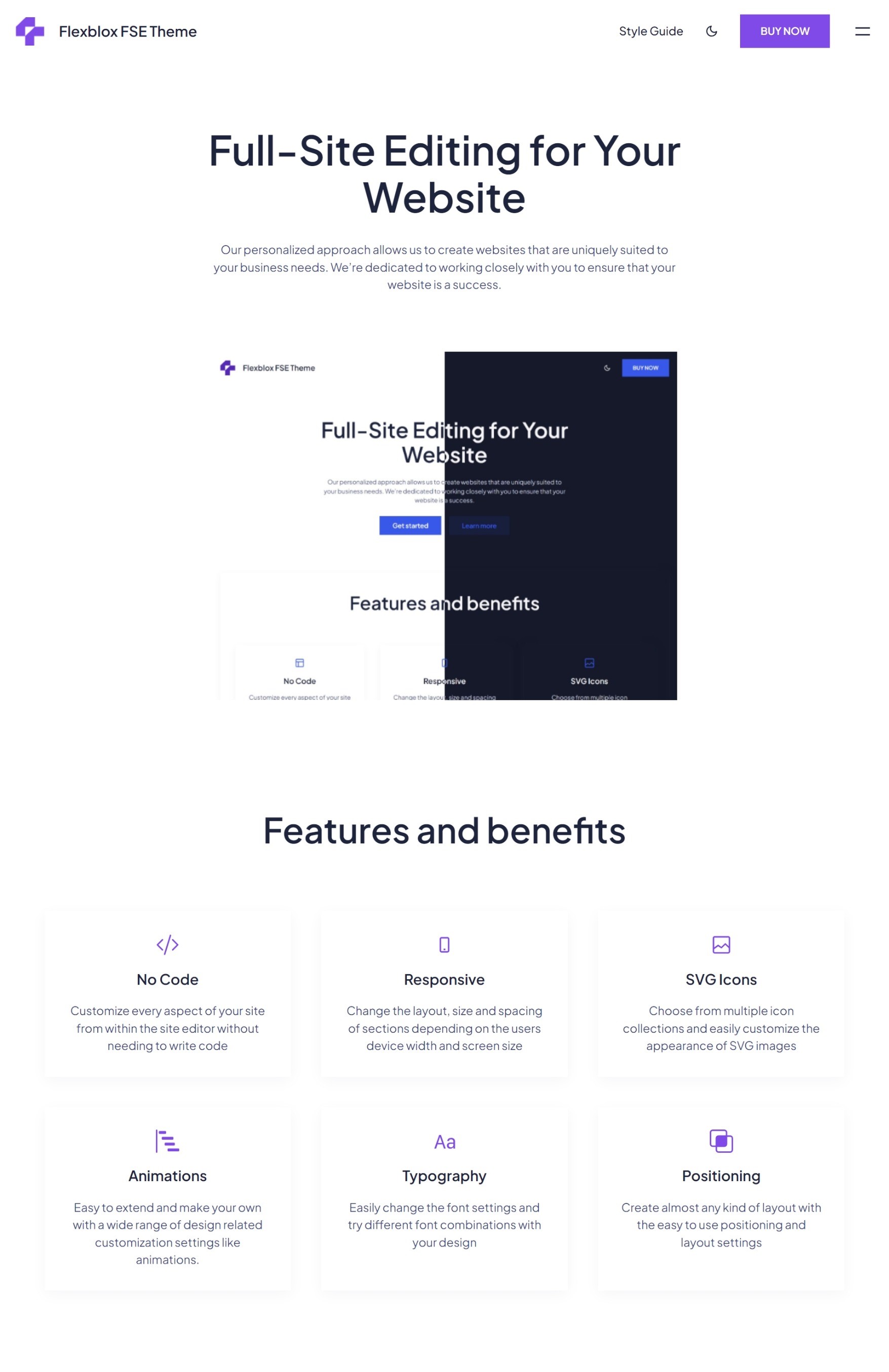 Modern full site editing child theme for Flexblox. Perfect for SaaS companies, startups, agencies, freelancer portfolios, crypto or any digital product or service business.